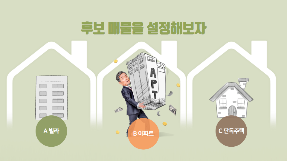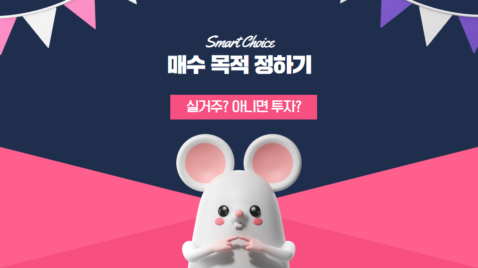매수의 목적이 실 거주를 위한 것인지 투자를 위한 것인지 정하는 것입니다.