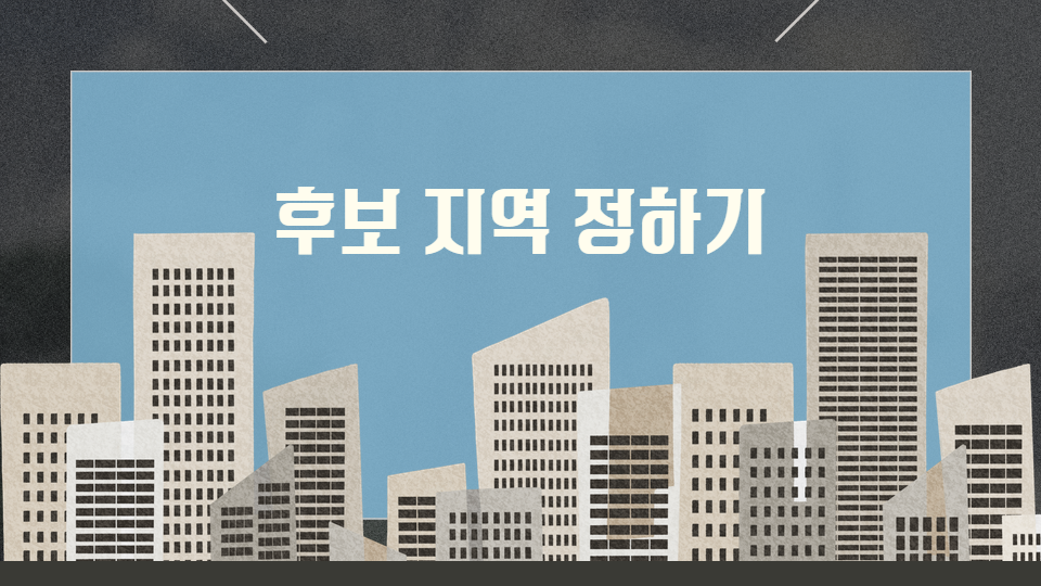 후보지역은 처음에는 10개 정도에서 시작해 점점 줄여나가 최종적으로 2~3개 정도로 줄여주는 것이 좋은 데요.